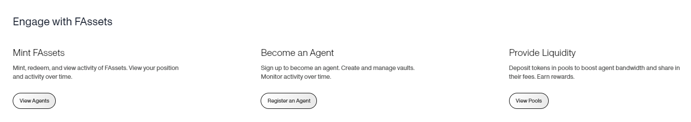 For users who are comfortable with CLI operations, consider becoming an agent. Agents play a pivotal role in providing liquidity and supporting minting operations. In exchange for participation, agents will earn fees from FAsset mints when FAssets are finally live on mainnet.