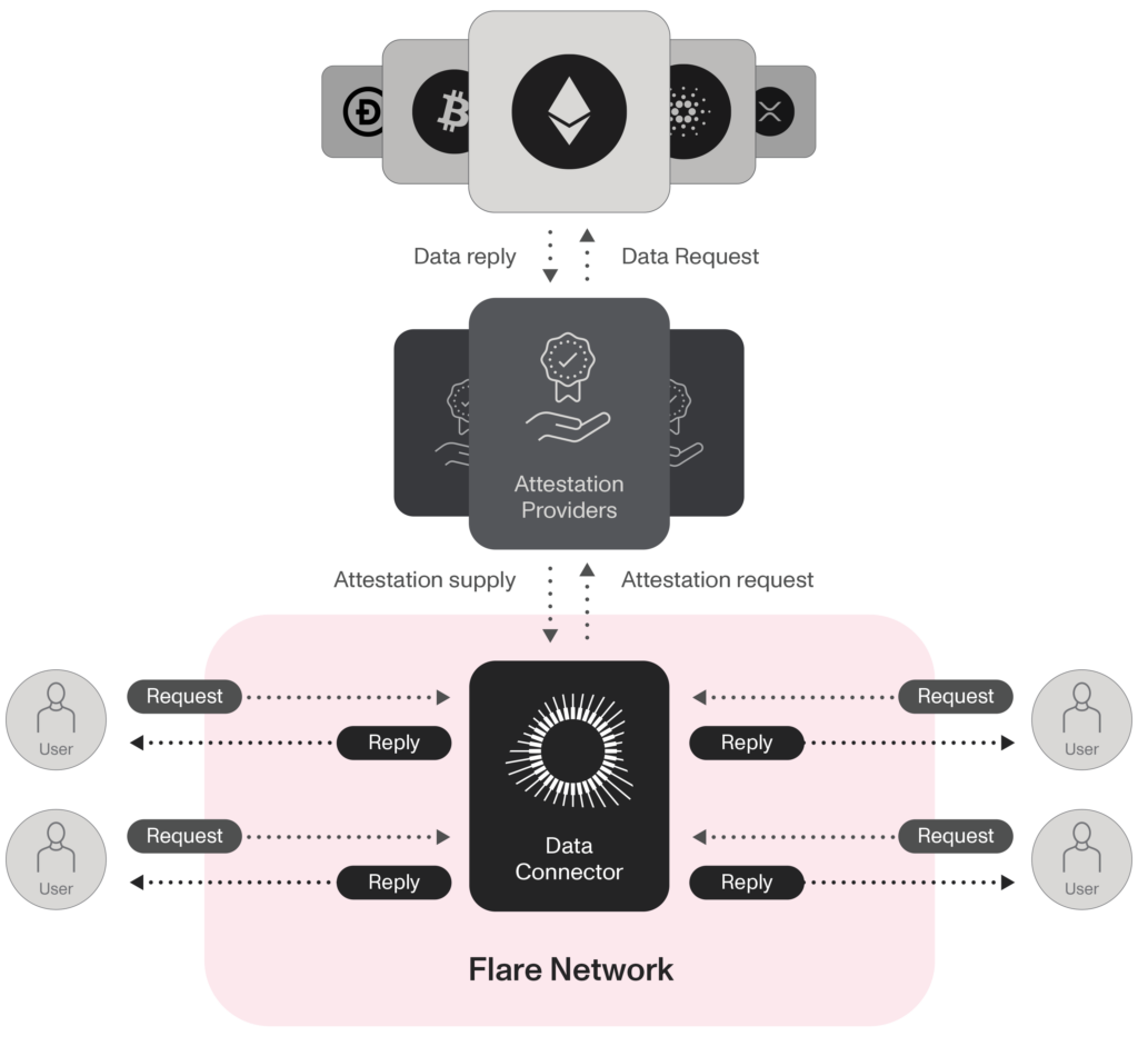 The Data Connector enables Flare to safely and trustlessly come to consensus over an event that has taken place externally to the network, for example a blockchain transaction between two parties or the content of an API on the internet.