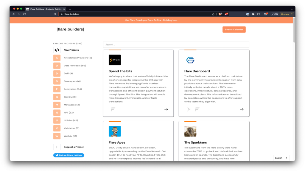 Flare.Builders is a third party catalogue of the different projects being built on the Flare and Songbird networks.