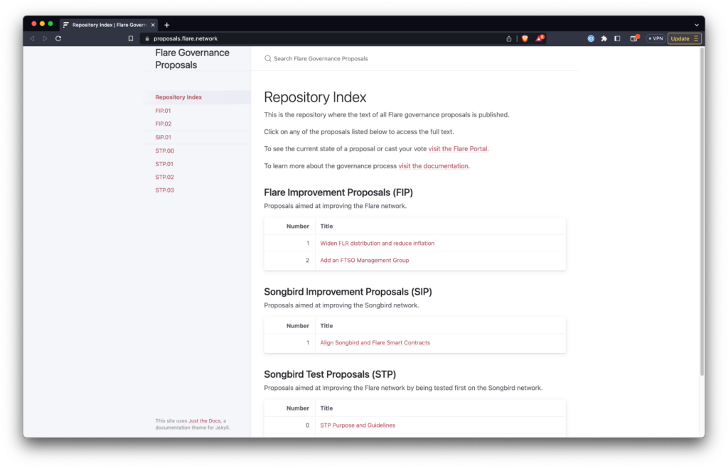 Proposals are visible in the Proposals Repository and when active can be voted on using the Flare Portal.