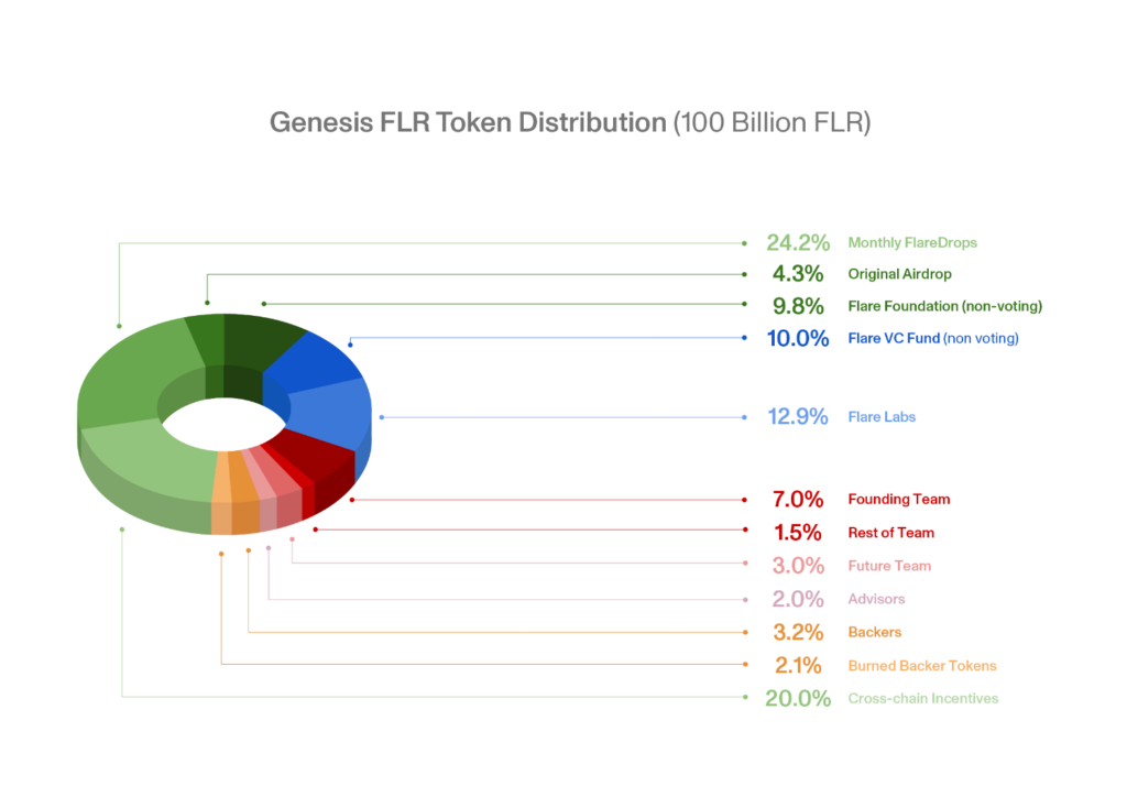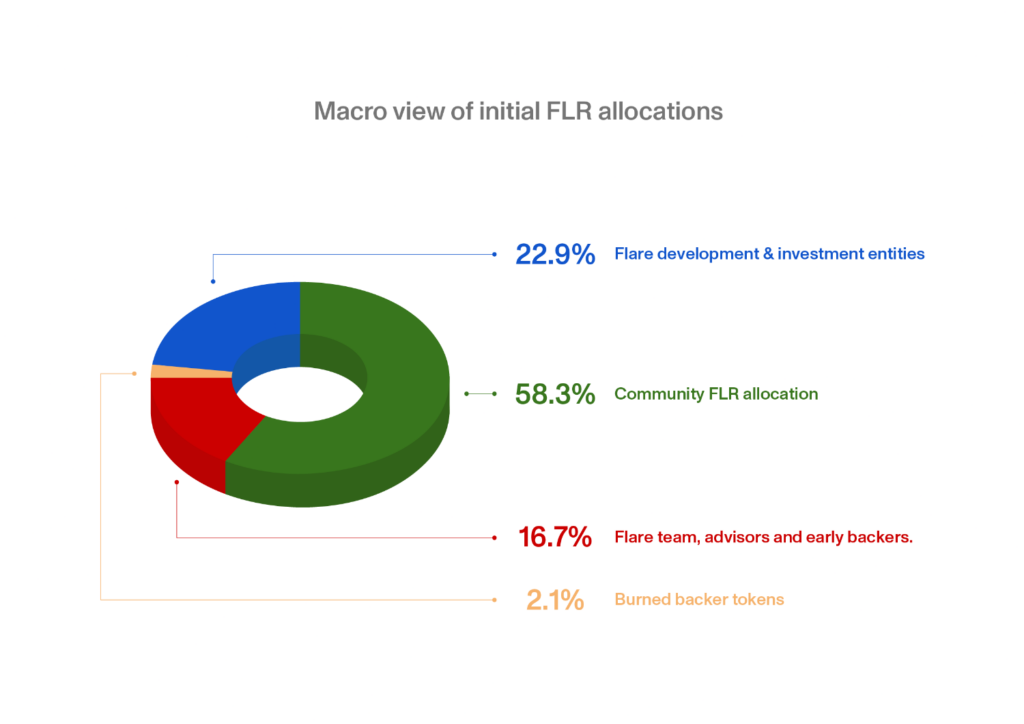 The majority of Flare (FLR) tokens are destined for community ownership, whether by direct token distribution, network incentives or through Flare Foundation ecosystem initiatives.